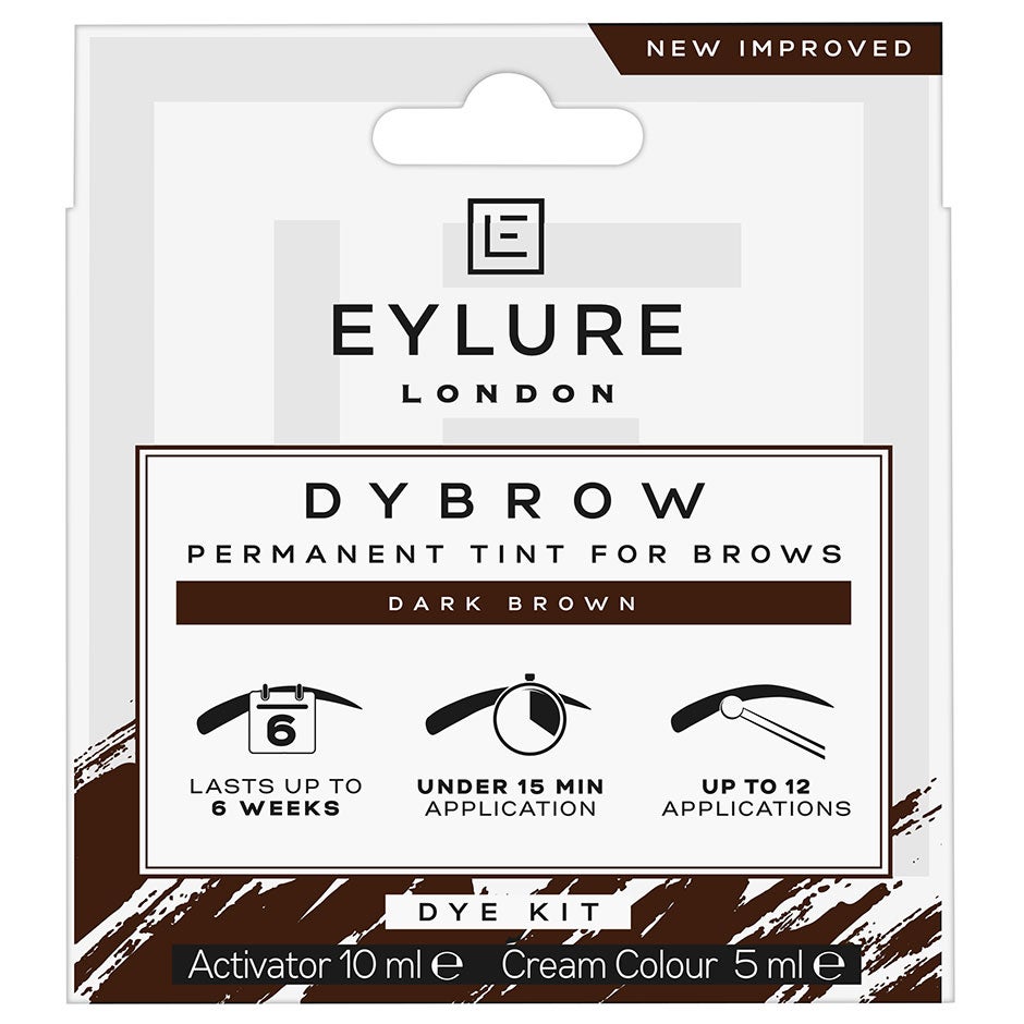 15 ml, Eylure Dybrow är det perfekta sättet att få mörka glänsande ögonbryn som varar i upp till 6 veckor. En beprövad formula gör ljusare ögonbryn mörkare och garanterar en jämn färg med vackert definierade ögonbryn. Med en enkel applikation under 15 minuter blir brynen naturligt fylligare. Vegansk formula. Finns i två nyanser: Svart och mörkbrun.